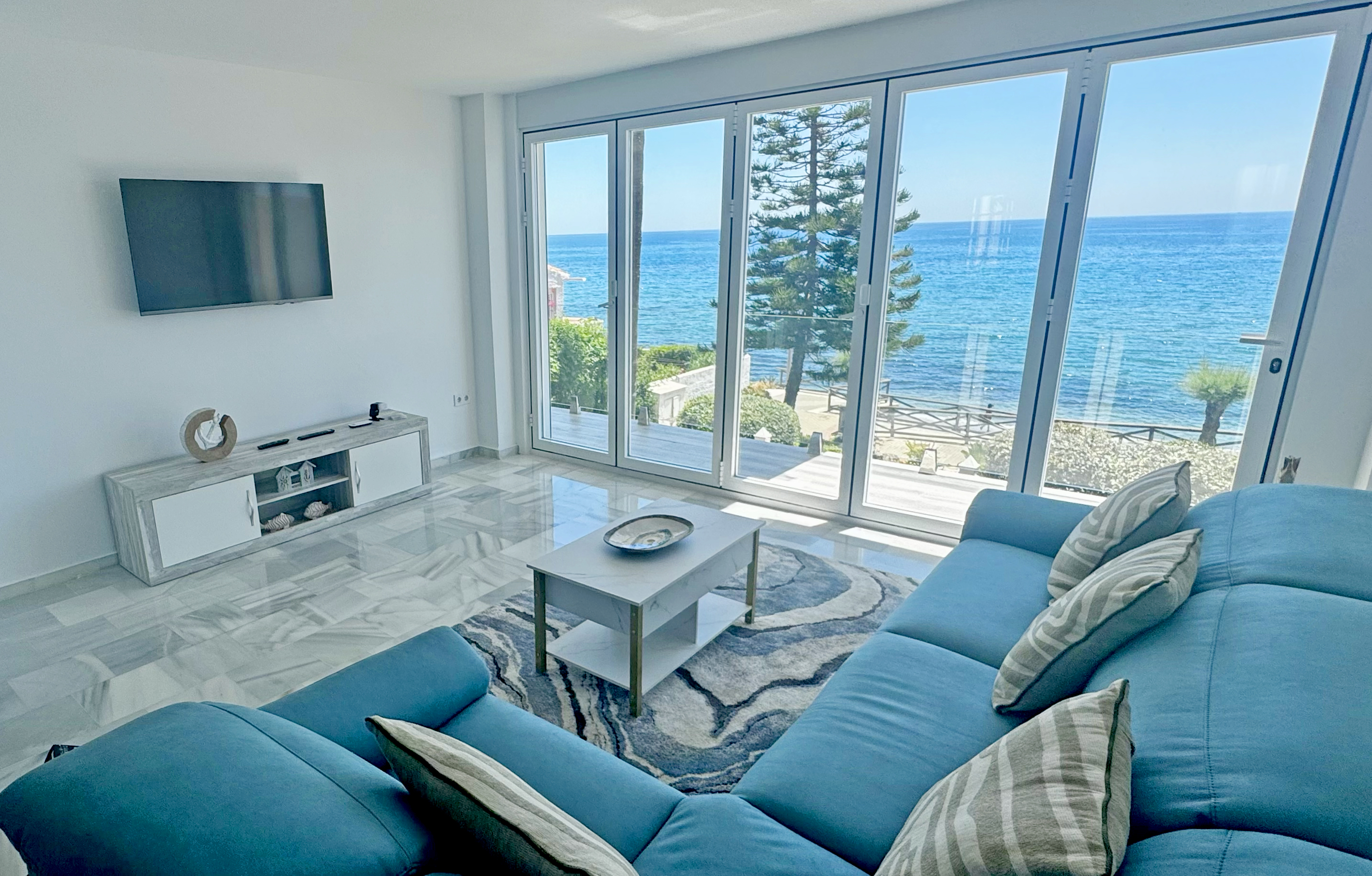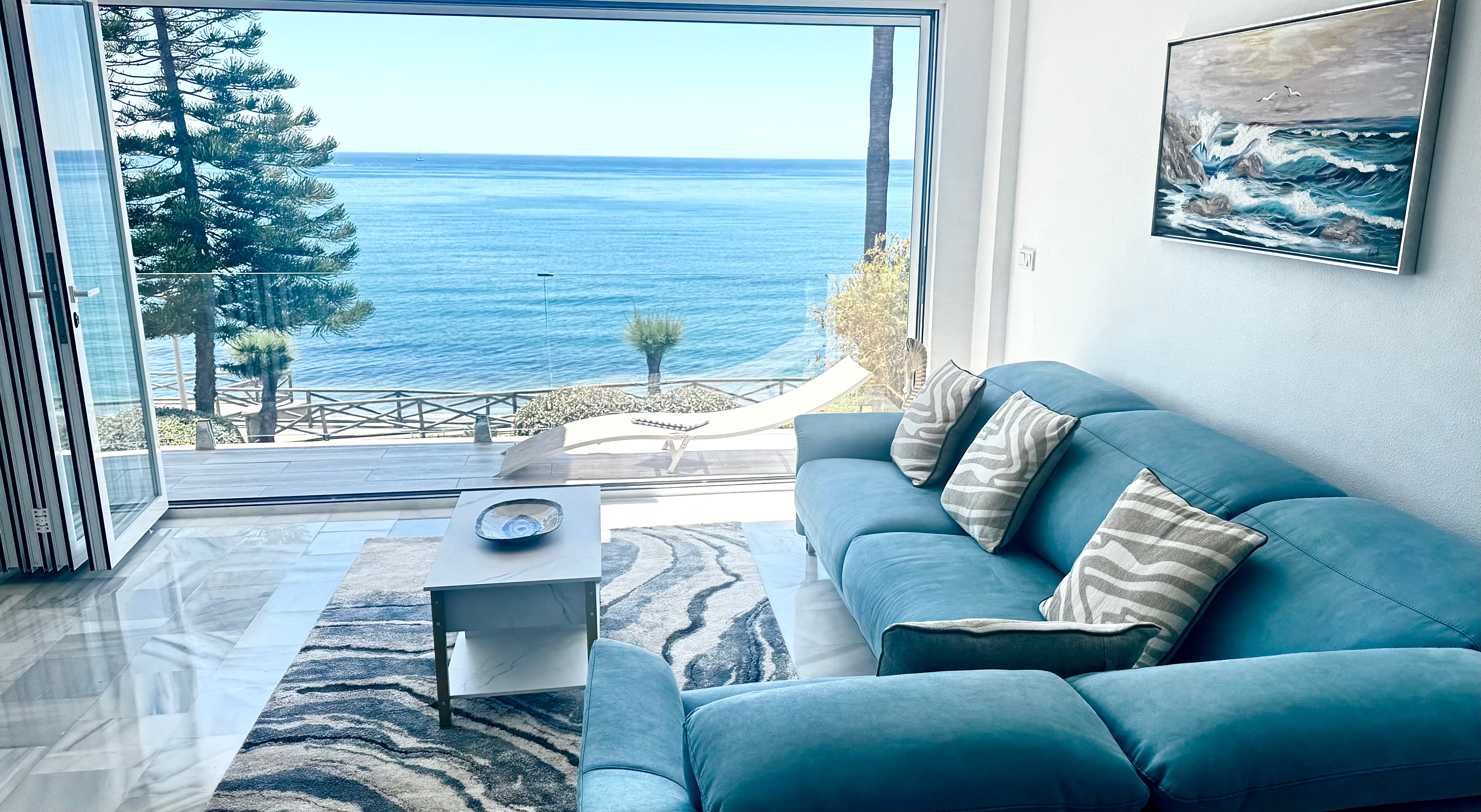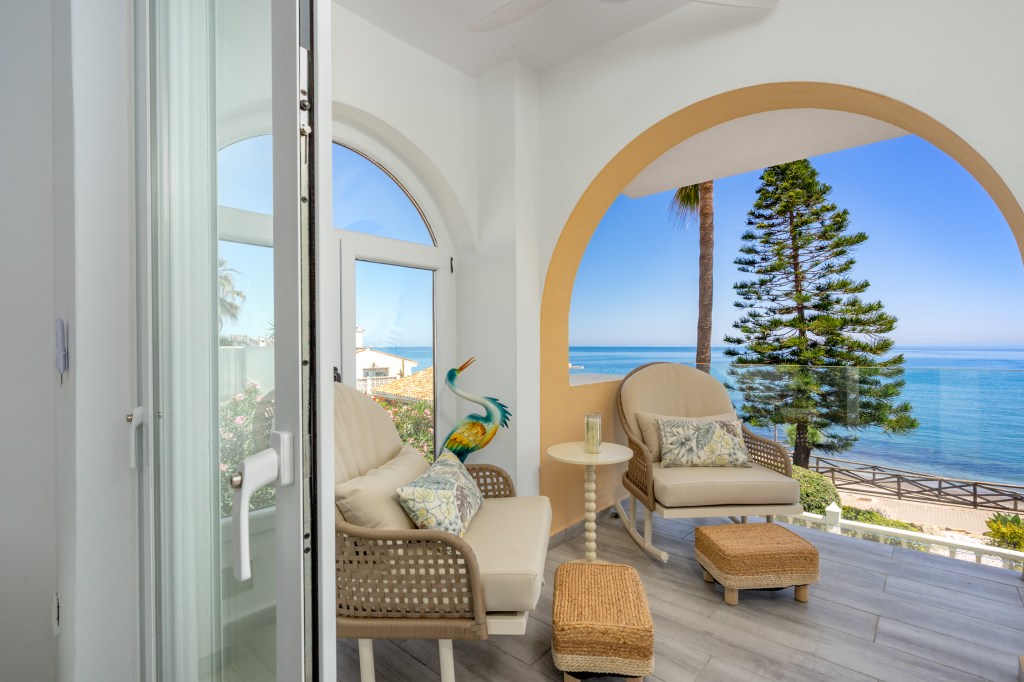 Nestled just steps from the beach, Casa Mirabella is a breathtaking oceanfront duplex designed for those who crave beauty, comfort, close proximity to the historic town of Estepona, and uninterrupted connection to nature. This newly renovated 2 bedroom 2 in a half bathroom luxury holiday home in Estepona, Spain offers a seamless blend of modern elegance and soulful relaxation—where the sea is not just a view, but a presence in every moment.